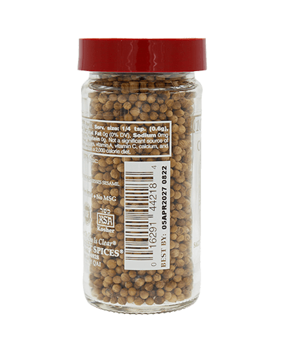 Popular in Indian and Moroccan food. To add a hint of orange peel flavor, crush or grind into your favorite savory or sweet dishes. An excellent addition to seafood cocktail sauce, fruit salad or sautéed summer squash. Ground coriander seed is an essential ingredient in curry powder.